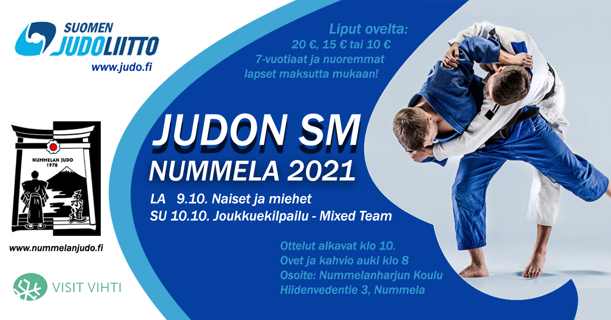 Aikuisten SM-kilpailut järjestää Nummelan Judo 9.-10.10. Lauantaina kilpaillaan yksilökilpailuissa ja sunnuntaina joukkuekilpailuissa.