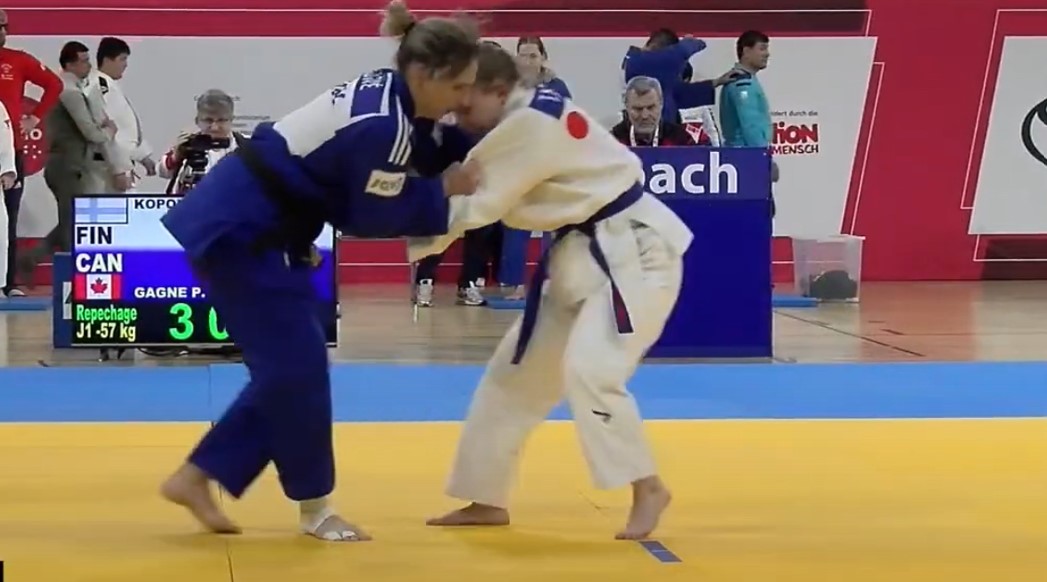 Koposella oli taistelutahto kohdillaan, sillä kanadalaisen ensimmäinen heittomylläkkä jatkui matossa päätyen lopulta mateen. Uusi aloitus, jolloin Gagne sai pyöräytettyä uchimatalla Koposesta wazarin. Taistelu jatkui matossa, mutta kumpikaan ei saanut toista pakettiin. Mate komento ja otteet kiinni ja hajime. Kanadalainen etsi heittopaikan, josta sai Koposta pyöräytettyä matalalla uhrautumisheitolla wazarin arvoisesti. Ottelun voitto Gagnelle.